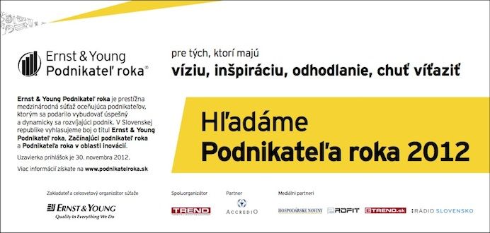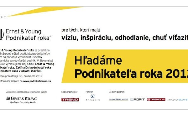 Spoločnosť EY vyhlasuje 12. ročník prestížnej súťaže EY Podnikateľ roka v Slovenskej republike.