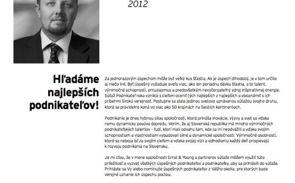 Aj tento rok sa bude konať celosvetovo uznávaná súťaž EY Podnikateľ roka. Podporili sme ju komunikačnou kampaňou.